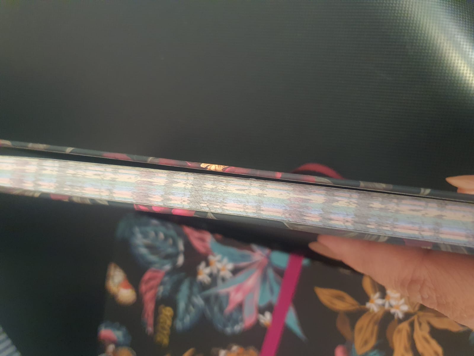 Cosida. . Fita marcador. A Completa. Lateral ddas folhas decorada