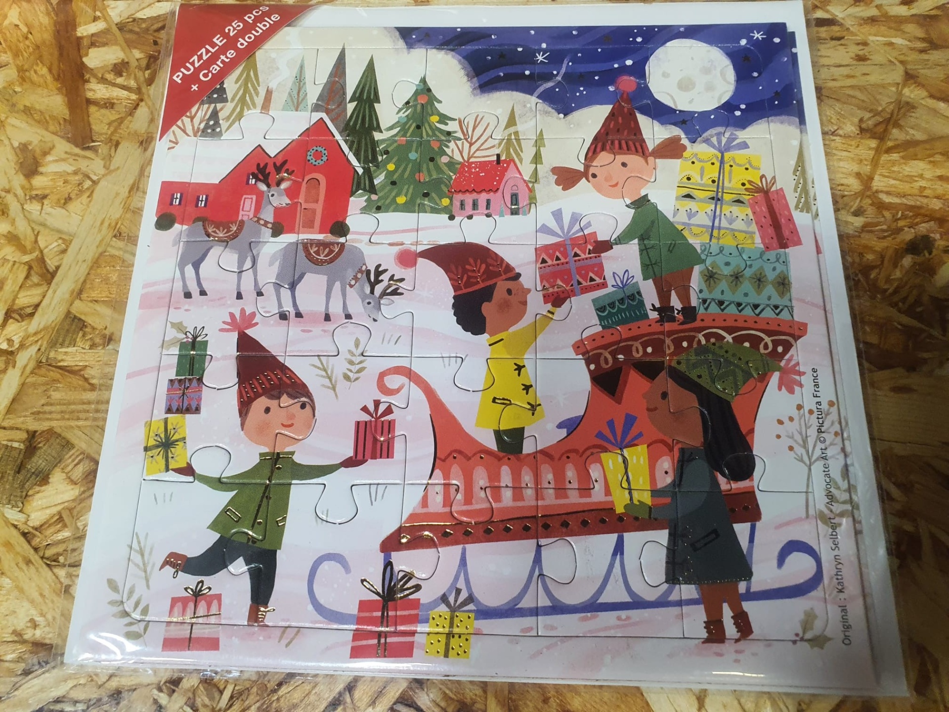 Além de um puzzle tem postal com a mesma imagem, para escrever.